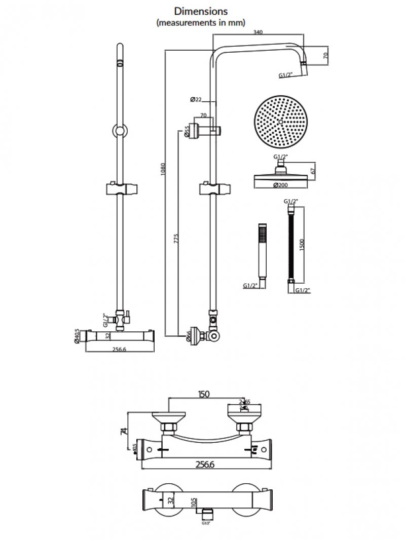 • Comes with bar shower valve, shower handset, fix shower head and rigid riser rail