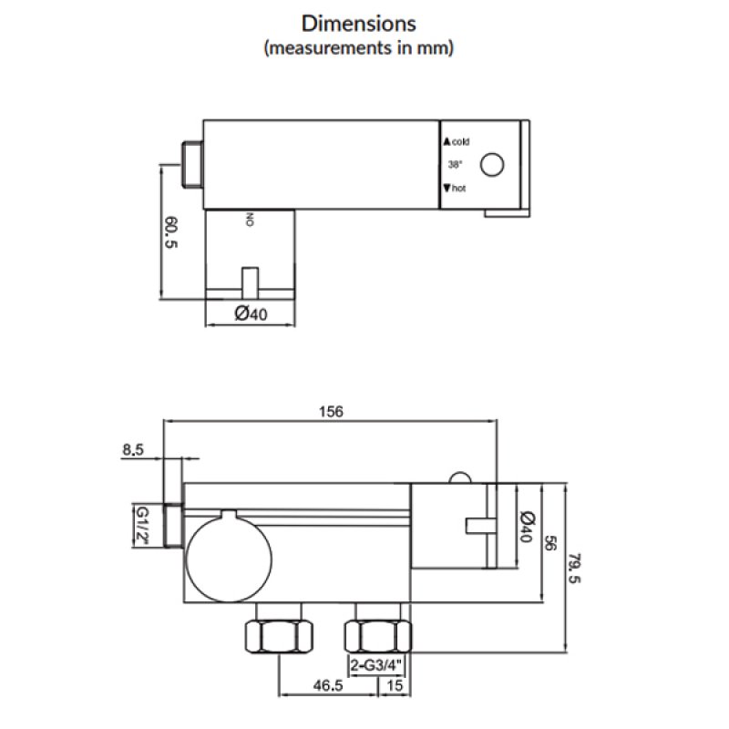 Orbit Entry Thermostatic Vertical Bar Shower Valve for Douche - Chrome | Product Image Orbit Entry Thermostatic Vertical Bar Shower Valve for Douche - Chrome