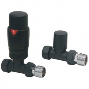 Orbit Designer Thermostatic Straight Radiator Valves Pair - Black
