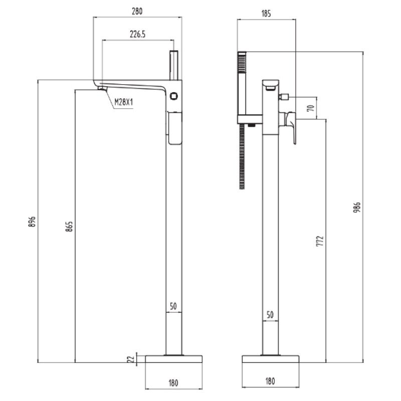 Tap Base to Spout865mm