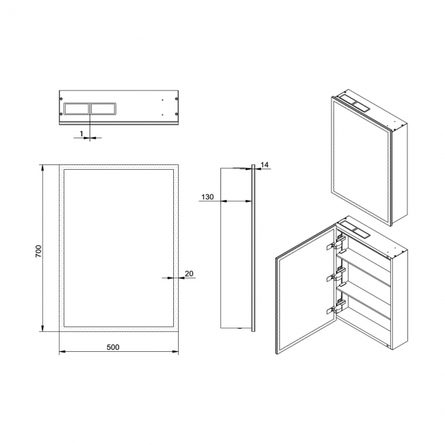 • Cabinet includes a demister pad, an electric shaver socker on the inside, and mirrored side panels for additional head and shoulder viewing