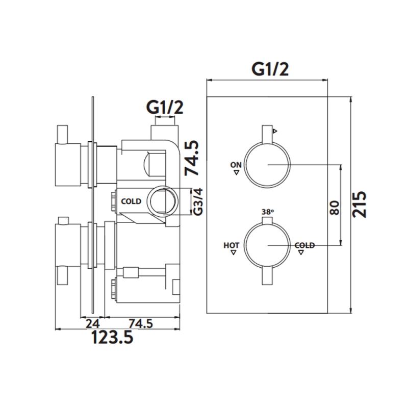 Orbit Recessed Round Concealed Shower Valve with Diverter Dual Handle - Chrome