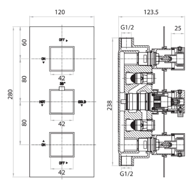 Orbit Recessed Square Concealed Shower Valve with Diverter Triple Handle - Chrome | Thumbnail Image Orbit Recessed Square Concealed Shower Valve with Diverter Triple Handle - Chrome | Thumbnail Image Orbit Recessed Square Concealed Shower Valve with Diverter Triple Handle - Chrome