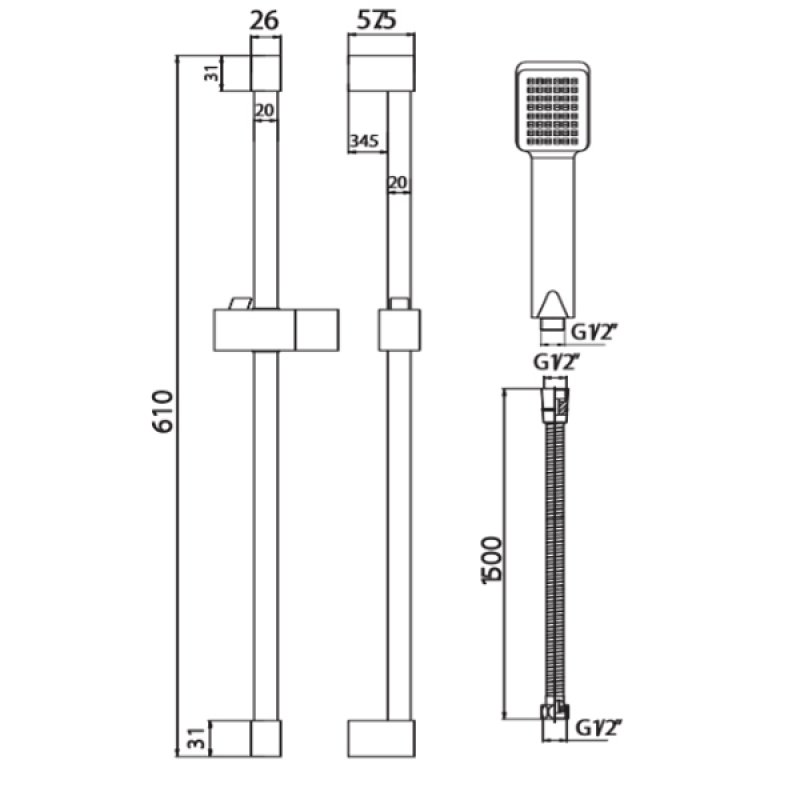 Shower Kit IncludesSlider Rail, Shower Handset, Shower Hose