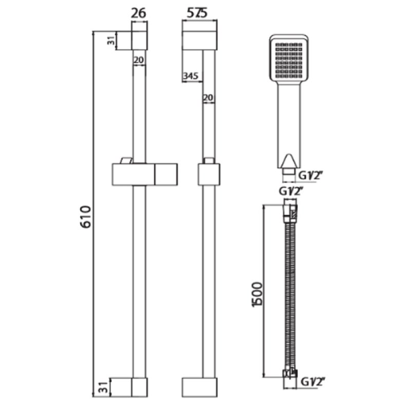• Comes complete with Shower Rail, Hose and Shower Handset