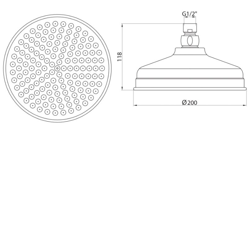 Orbit Traditional Round Fixed Shower Head 200mm Diameter - Chrome