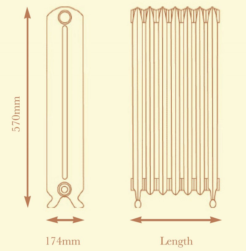 Named after the famous St Bartholomew's hospital, this cast iron radiator from Paladin is simple and timeless in its design. This model is perfect for anyone with a period property; it has been designed in the popular "hospital" style that was particularly prevalent in Victorian times.The curvaceous appeal of this radiator is plain for all to see, characterised by 2 columns and understated footed ends. This versatile model stands at 570mm high - a similar size to a standard modern panel radiator - so if you want to create a centrepiece in a contemporary setting, there is nothing to stop you!The model itself is available in a variety of sizes - from 3 sections (measuring 249mm in width) all the way up to 60 sections (a monstrous 2894mm). Due to the weight and sheer size of this radiator, some on-site joining will be required if the width exceeds 1000mm (1 metre).Please use our configuration tool at the top of the page to order this Bartholomew radiator in the width you desire, and don't forget to consider radiator valves, wall stays and colour options before finalising your purchase.
