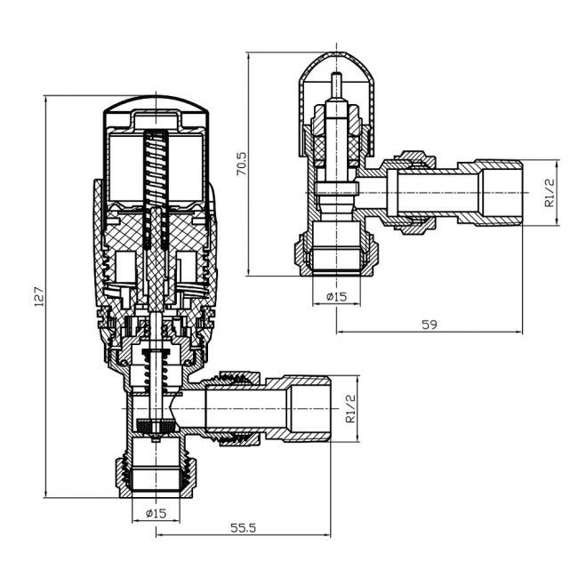 Prestige K-Therm Twin Pack TRV & Lockshield Angled Valve - Refined Chrome