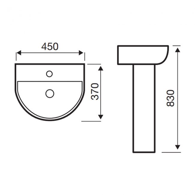 Prestige Kameo Slim Basin with Full Pedestal 450mm Wide - 1 Tap Hole