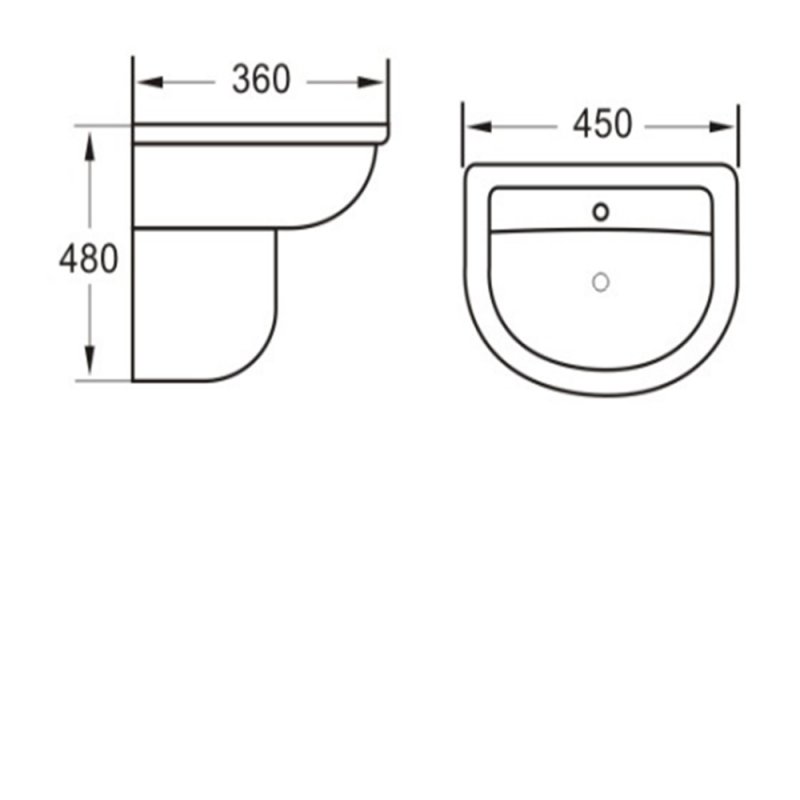 Prestige Kameo Slim Basin with Semi Pedestal 450mm Wide - 1 Tap Hole
