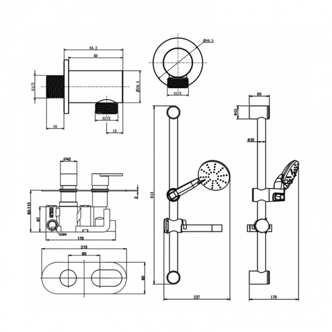 • Supplied complete with Shower valve, Adjustable Slide rail kit