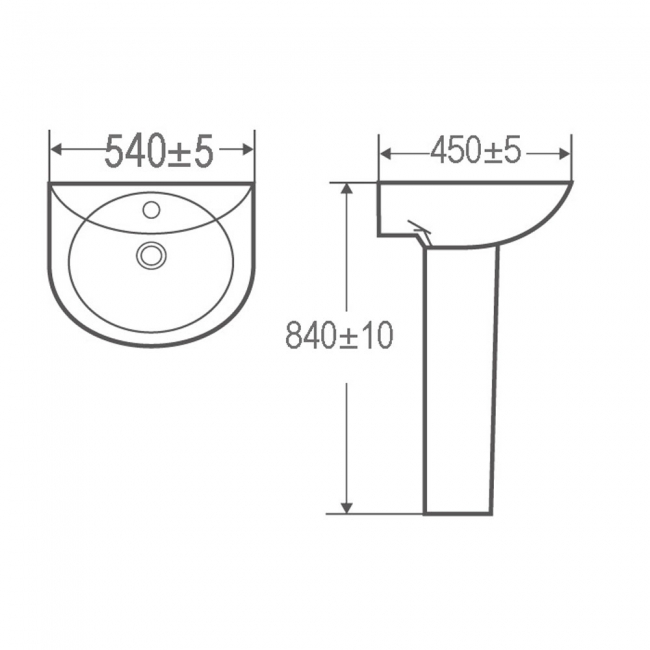 Prestige Proton Basin with Full Pedestal 540mm Wide - 1 Tap Hole