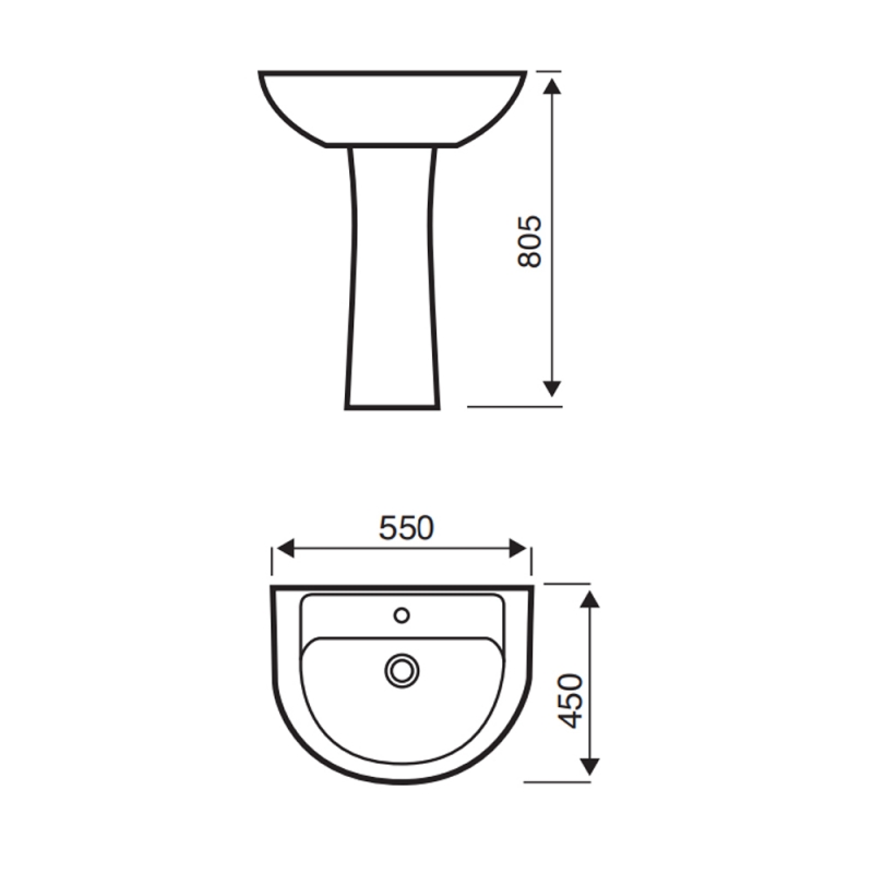 Vitra S50 Basin and Full Pedestal 550mm Wide - 1 Tap Hole