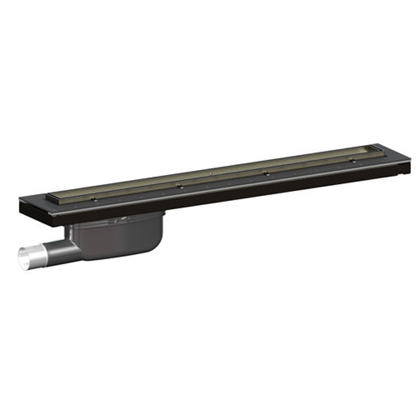 Purus Living Linear Side Wet Floor Drain, 800mm Wide, Stainless Steel Tile Grate