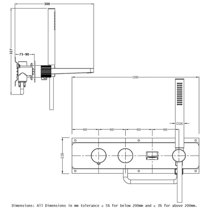 RAK Amalfi Thermostatic Concealed Dual Outlet Shower Valve with Handset and Bath Spout - Matt Black | Thumbnail Image RAK Amalfi Thermostatic Concealed Dual Outlet Shower Valve with Handset and Bath Spout - Matt Black