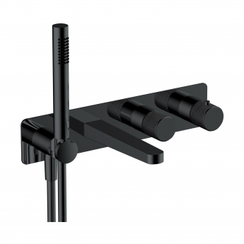 RAK Amalfi Thermostatic Concealed Dual Outlet Shower Valve with Handset and Bath Spout - Matt Black | Product Image RAK Amalfi Thermostatic Concealed Dual Outlet Shower Valve with Handset and Bath Spout - Matt Black