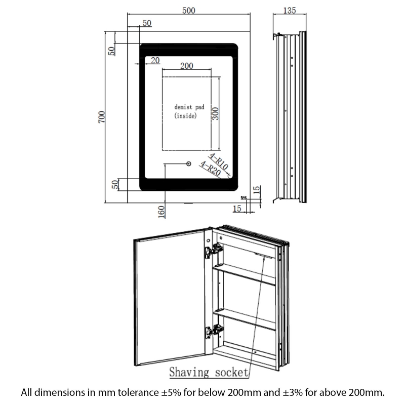 Bathroom Cabinet Features Shaver Socket, Touch Sensor