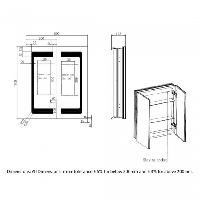 Bathroom Cabinet Features Shaver Socket, Touch Sensor