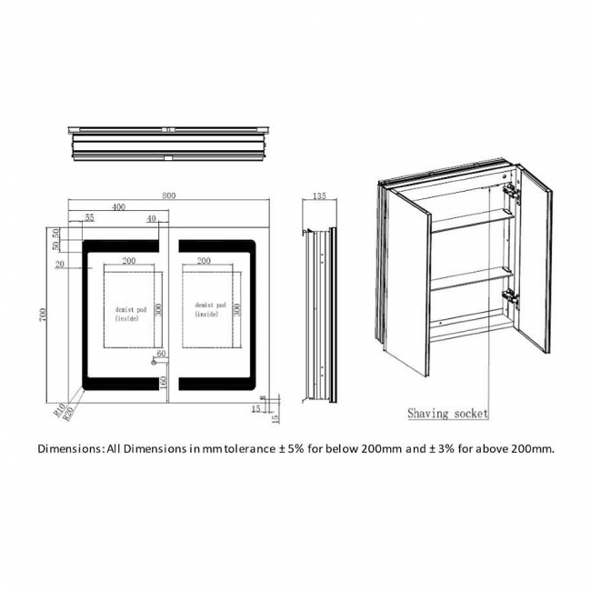 Bathroom Cabinet Features Shaver Socket, Touch Sensor