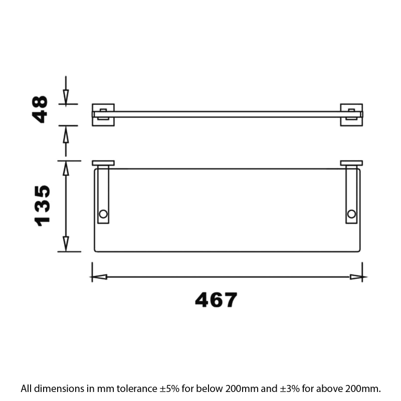 RAK Cubis Glass Shelf 467mm Wide - Black