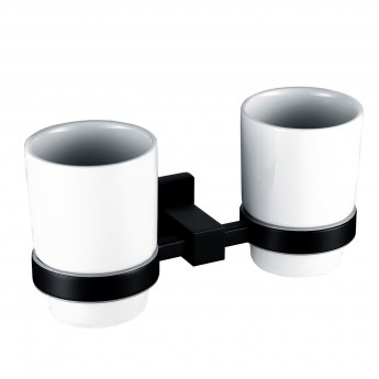 RAK Cubis Double Tumbler and Holder Wall Mounted - Black | Thumbnail Image RAK Cubis Double Tumbler and Holder Wall Mounted - Black