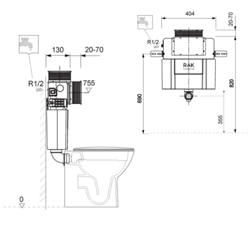 RAK Ecofix Top/Front Access Concealed Toilet Cistern 820mm H x 404mm W x 200mm D - White RAK Ecofix Top/Front Access Concealed Toilet Cistern 820mm H x 404mm W x 200mm D - White
