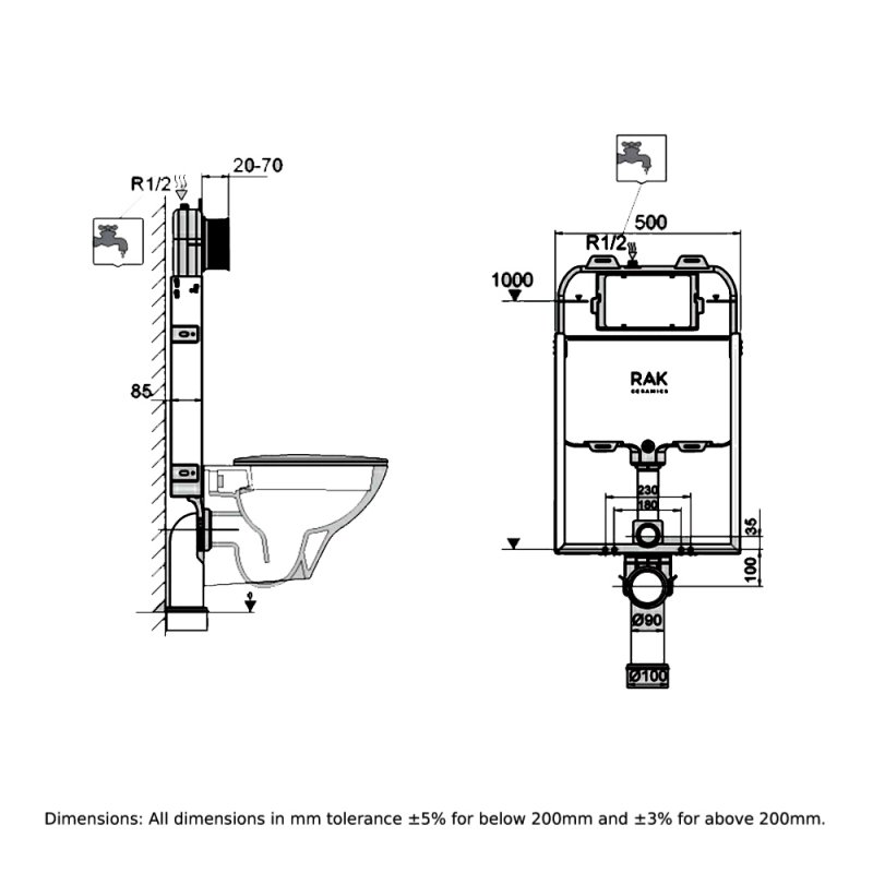 RAK Ecofix Slimline Hidden Cistern 80mm with Metal Frame for Wall Hung WC Unit - Alpine White RAK Ecofix Slimline Hidden Cistern 80mm with Metal Frame for Wall Hung WC Unit - Alpine White