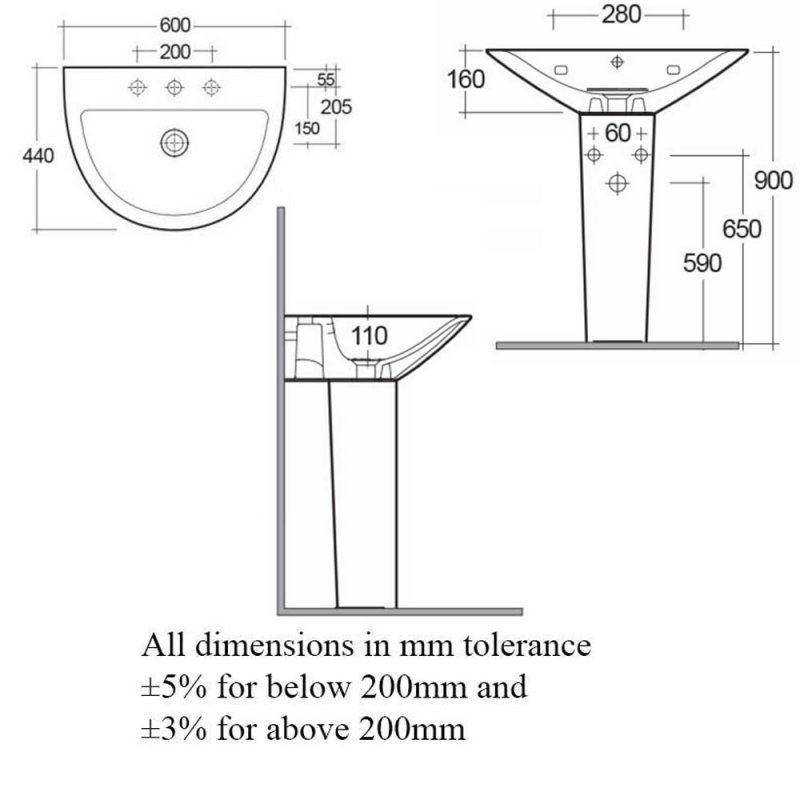 • Supplied with a pre-drilled single tap hole, suitable for a mono basin mixer