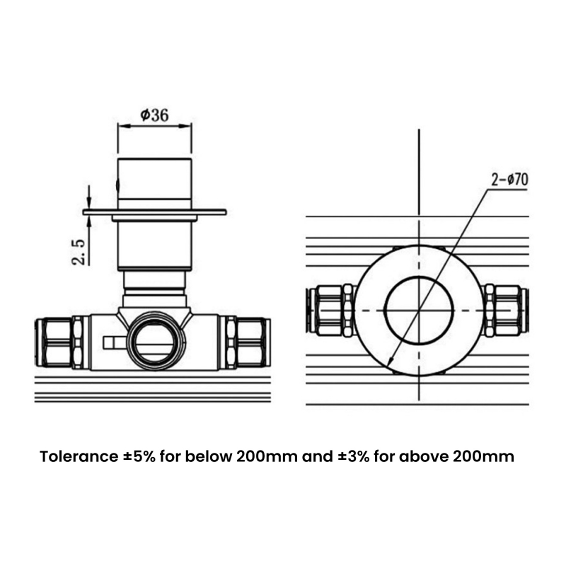 • Shower valve supplies water to 2 outlets c/w built-in stop valve