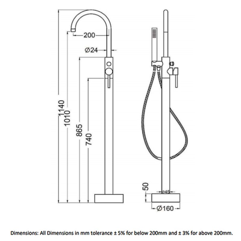 RAK Prima Tech Freestanding Bath Shower Mixer Tap - Chrome