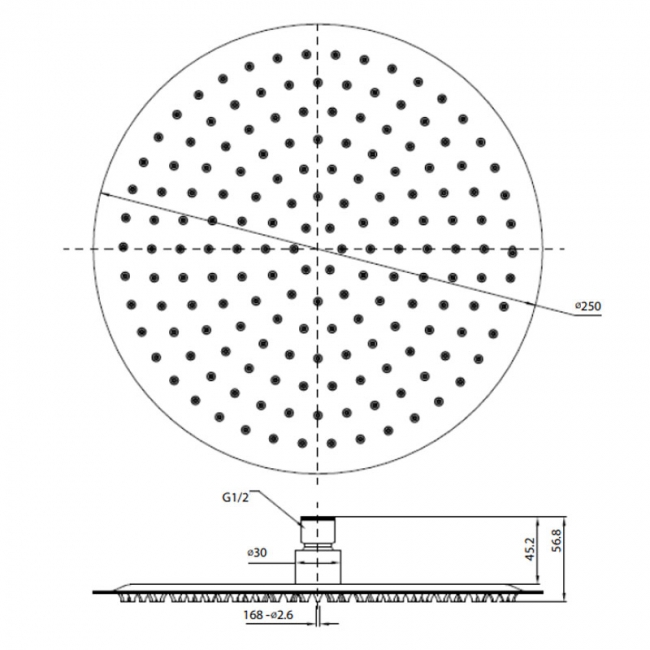 Shower Head Depth 250mm