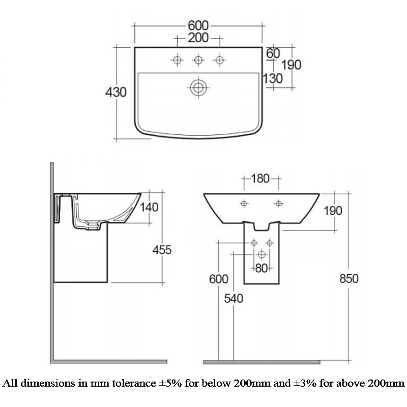 RAK Summit Basin and Semi Pedestal 600mm Wide - 1 Tap Hole RAK Summit Basin and Semi Pedestal 600mm Wide - 1 Tap Hole RAK Summit Basin and Semi Pedestal 600mm Wide - 1 Tap Hole