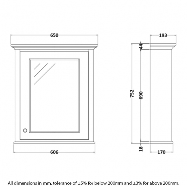 RAK Washington Mirrored Bathroom Cabinet 650mm W x 750mm H - Greige | Product Image RAK Washington Mirrored Bathroom Cabinet 650mm W x 750mm H - Greige