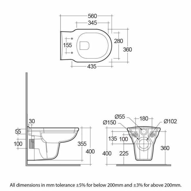 Toilet Pan Height355mm