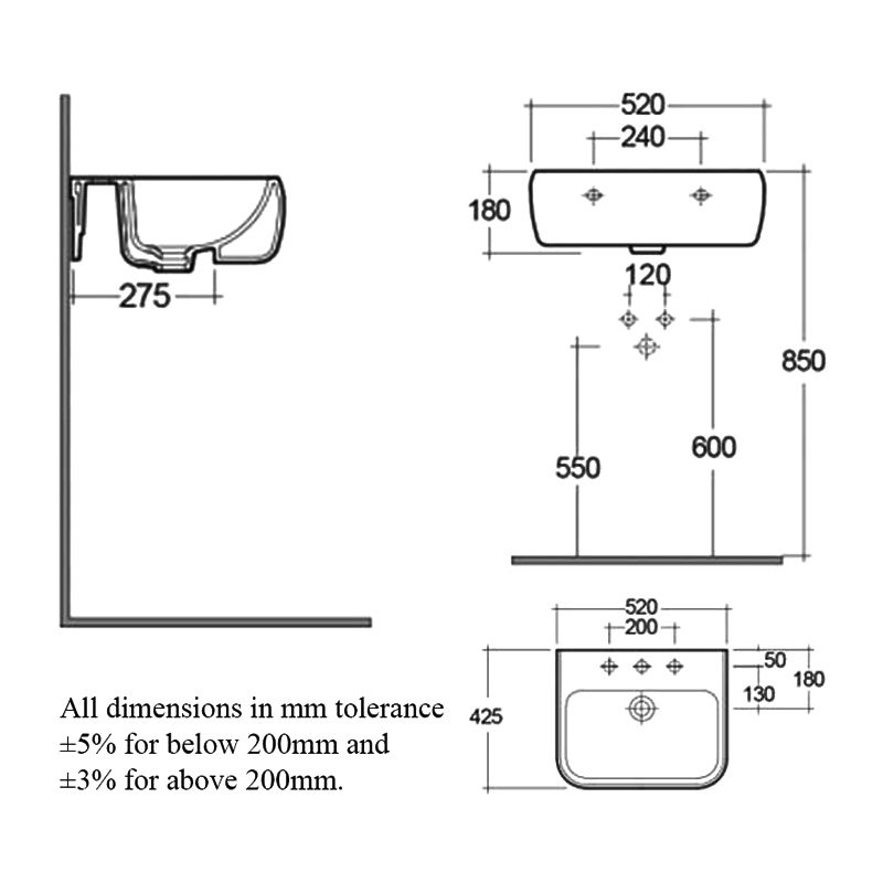Basin Projection 425mm