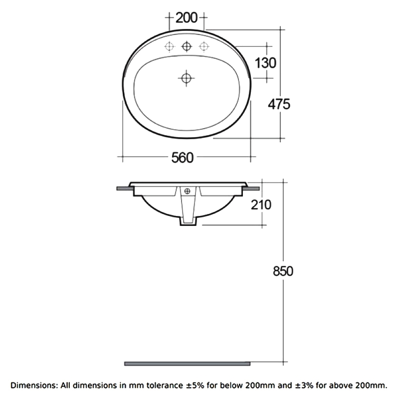 RAK Mira Inset Countertop Basin 560mm Wide - 1 Tap Hole | Product Image RAK Mira Inset Countertop Basin 560mm Wide - 1 Tap Hole