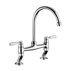 • The Traditional bridge mixer beautifully complements a ceramic farmhouse kitchen sink