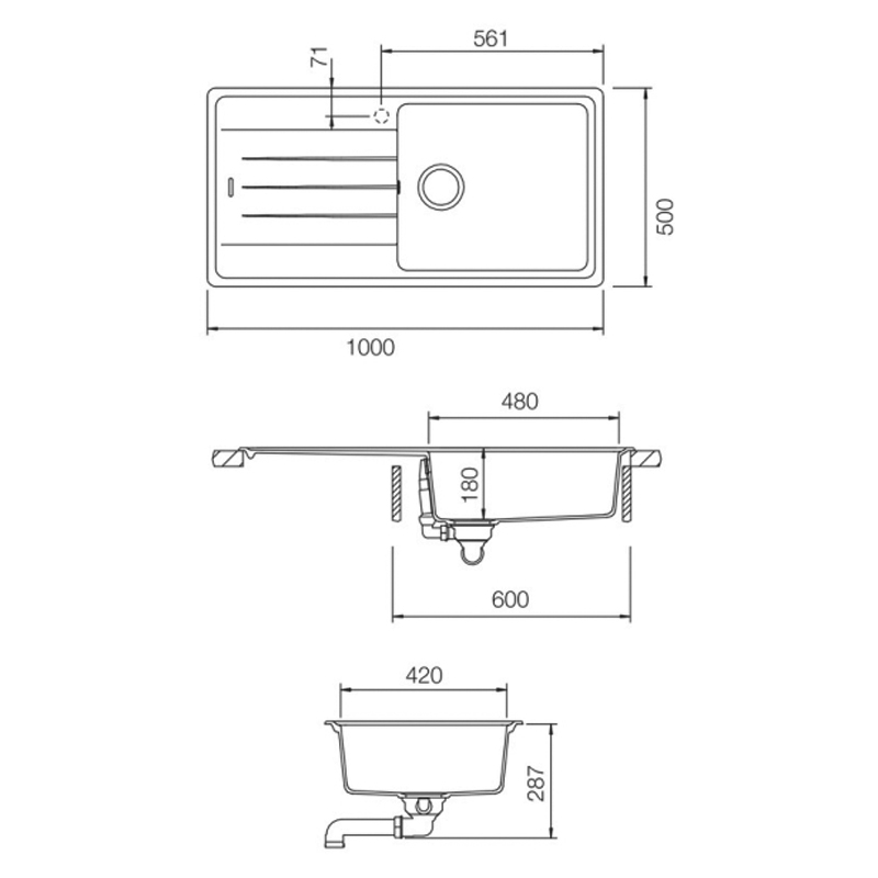 Rangemaster Elements 1.0 Bowl Inset Kitchen Sink with Waste Kit 1000mm L x 500mm W - Dove Grey | Product Image Rangemaster Elements 1.0 Bowl Inset Kitchen Sink with Waste Kit 1000mm L x 500mm W - Dove Grey