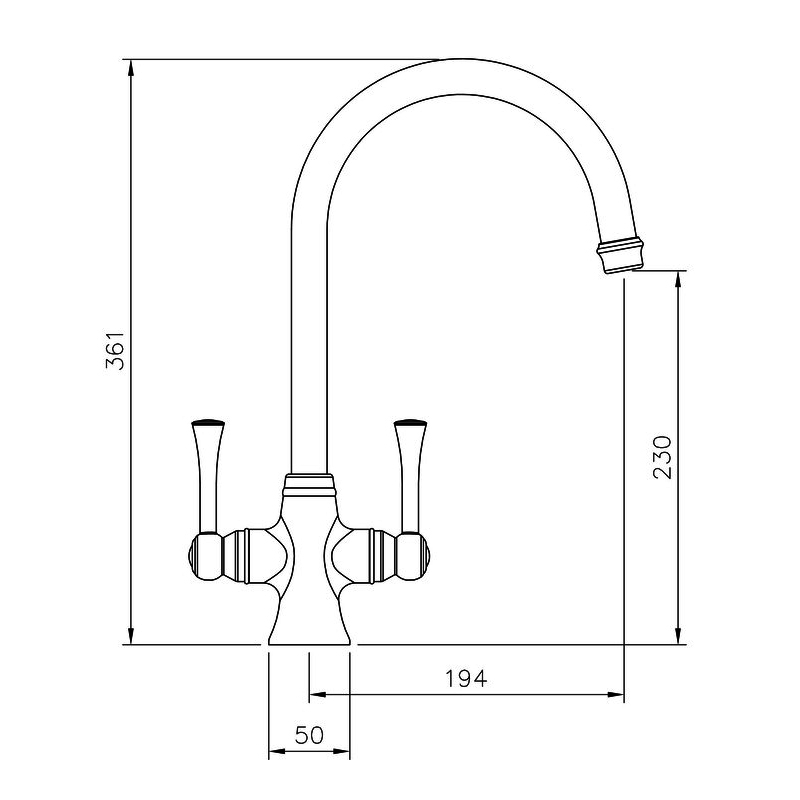• Kitchen tap features elegant dual lever handles with quarter turn function ensuring a precise flow of water at the turn of the handle