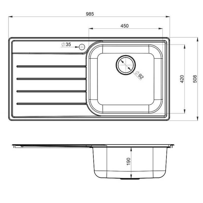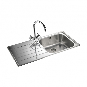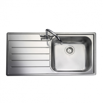 Rangemaster Oakland 1.0 Bowl Inset Kitchen Sink with LH Drainer & Waste Kit 985mm L x 508mm W - Stainless Steel