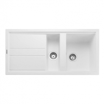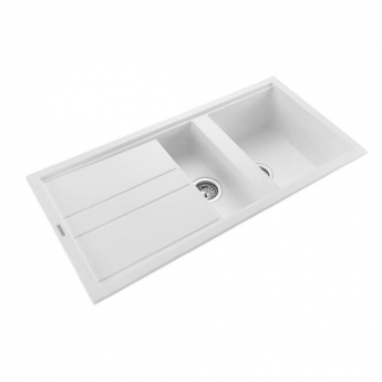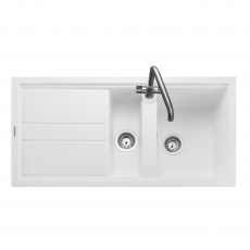 Rangemaster Topaz 1.5 Bowl Inset Granite Kitchen Sink with Waste Kit 1000mm L x 510 W - Arctic White