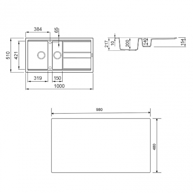 Cut-Out Size980mm x 480mm