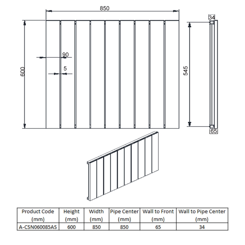 Reina Casina Single Horizontal Aluminium Radiator 600mm H x 850mm W Anthracite | Product Image Reina Casina Single Horizontal Aluminium Radiator 600mm H x 850mm W Anthracite