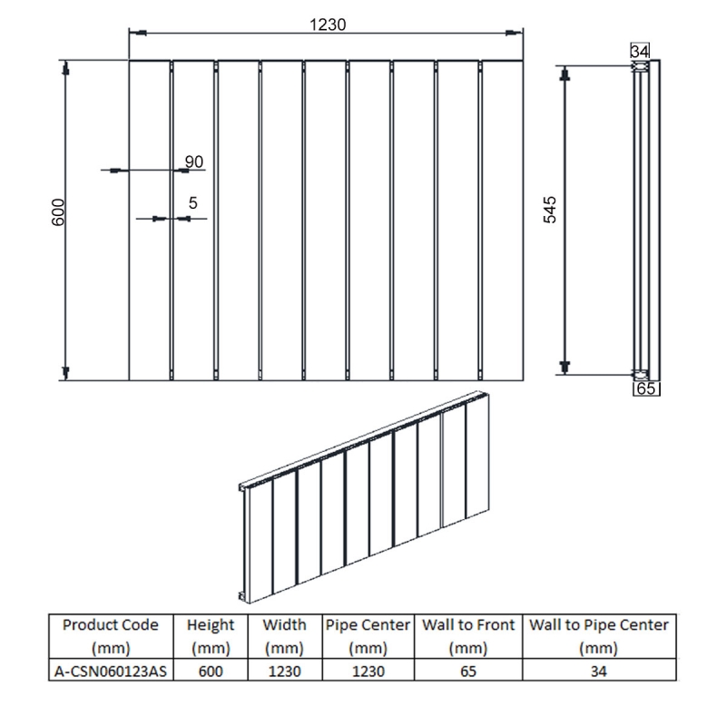 - Standard 1/2" BSP side connections - allow +90mm for radiator valve pipe centres