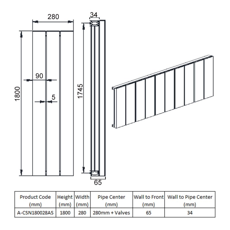 - Stylish vertical radiator consisting of multiple 90mm flat-fronted sections