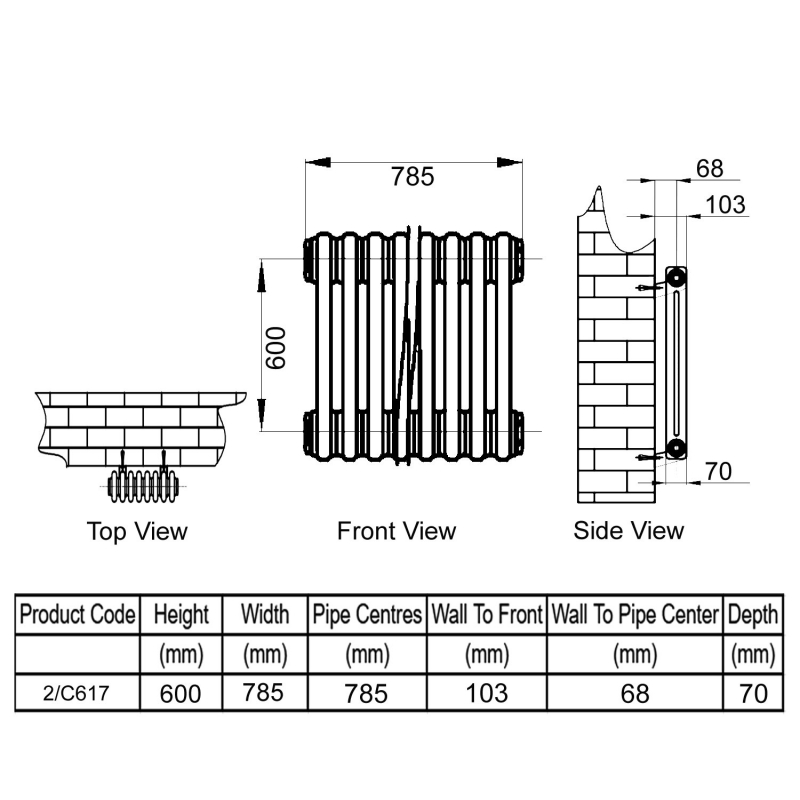 Reina Colona Horizontal Column Radiator - 2 Column - 600mm x 785mm - White