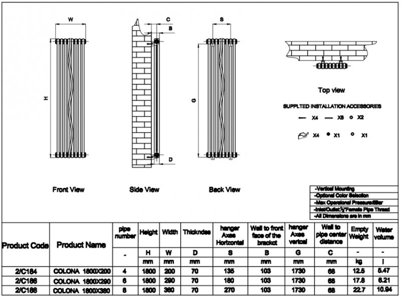The stunning Colona steel multi-column radiator can help to bring a traditional charm to any interior. This vertical model is available in either 2 or 3-column depths, and is often specified for use in hallways, living rooms and kitchens. The radiator is supplied with wall brackets as standard, but can also be combined with optional slip-on feet (sold separately) to add a different aesthetic, as well as helping with weight distribution.