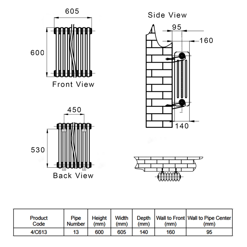 - Optional adjustable feet available separately - measuring 160mm from the floor to the base of the radiator