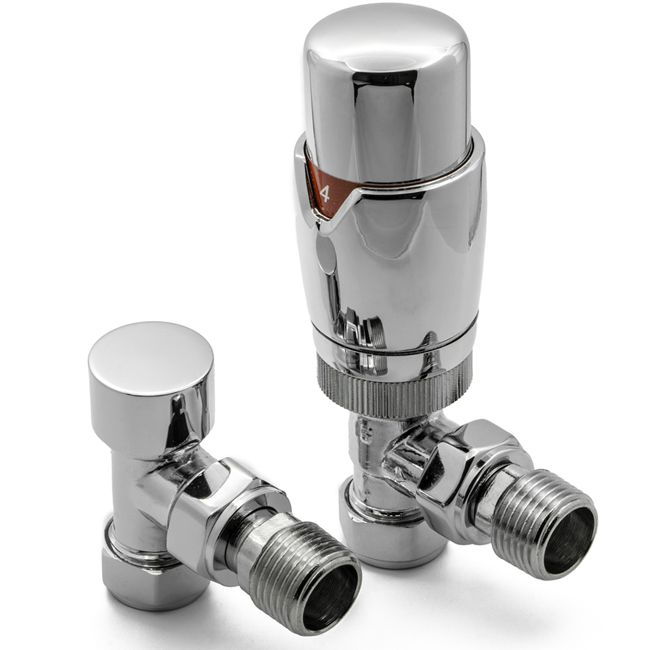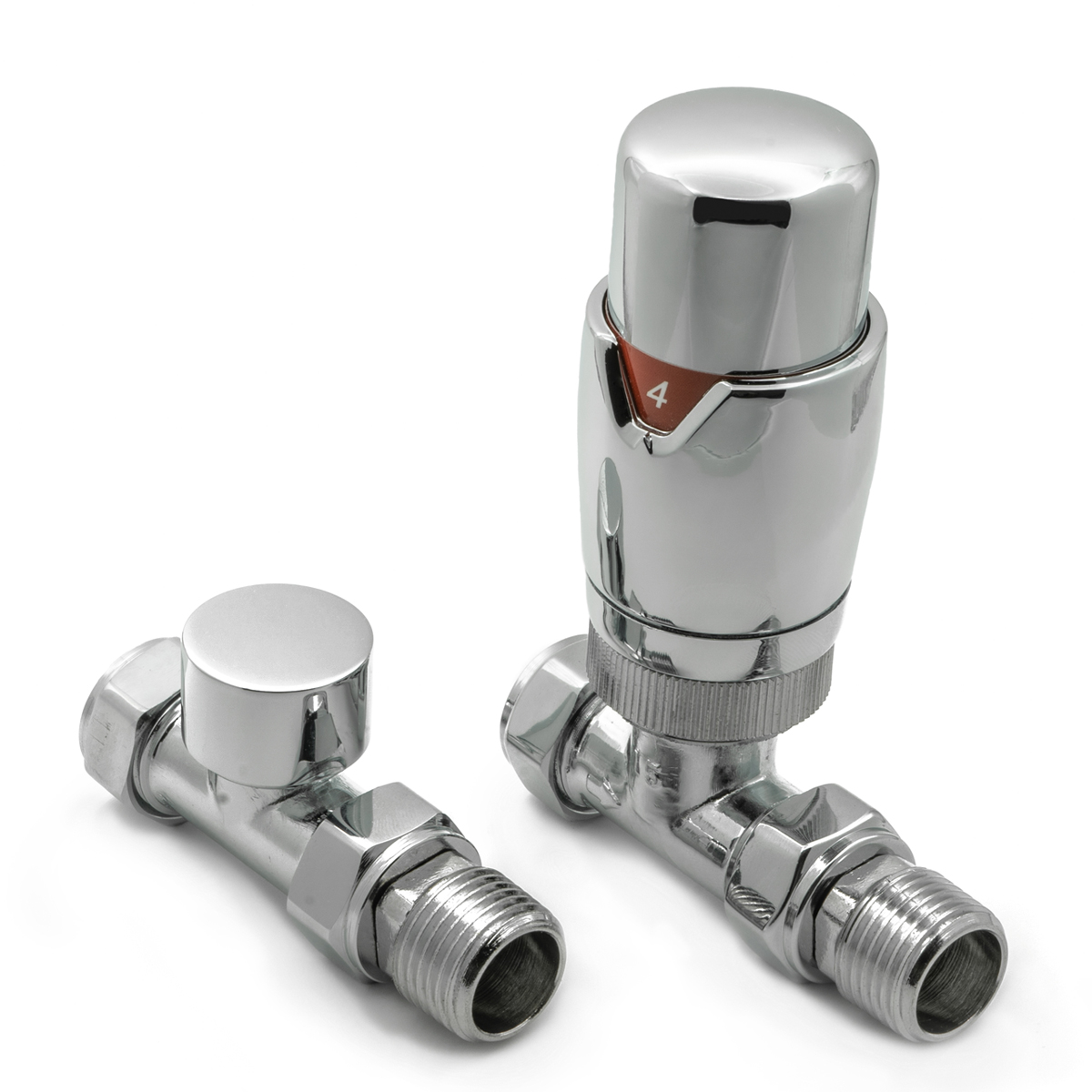 Reina Modal TRV Straight Radiator Valve and LockShield Chrome