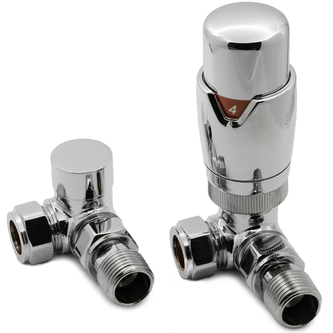 Reina Modal TRV Angled Radiator Valve and LockShield Chrome